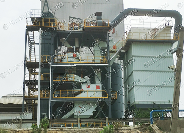原料經(jīng)過電子秤進入到皮帶輸送機中,由全封閉的提升機將物料入到五孔碾磨制砂機內(nèi)進行破碎處理,再由空氣篩對破碎后的物料進行篩分、選粉處理,篩分后的較大物料會返回五孔碾磨制砂機中進行二次破碎,符合要求的砂子則由傳送帶輸送至成品倉中;篩分過程中的粉塵會經(jīng)粗細粉分離機進入到布袋收塵器內(nèi),而其中較大的粗顆粒會在粗細粉分離機的作用下,按需求在成品砂中進行回摻,細粉塵將通過風力進入到布袋收塵器,作為副產(chǎn)品進行使用。